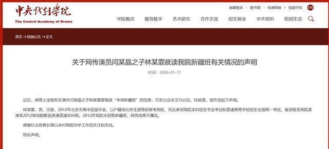甚至有网红博主已经就此问题向相关部门进行了举报。 不过,最终在沸沸扬扬的舆论中,林傲霏清白了,因为中戏针对此事发布声明了。 根据中戏的声明可知,林傲霏2012年北京市高中应届毕业,以户籍地北京生源身份报考了中戏,正常参加招生考试被录取。 在声明中中戏还特意强调,2012年中戏没有招收新疆班,网传信息不属实。